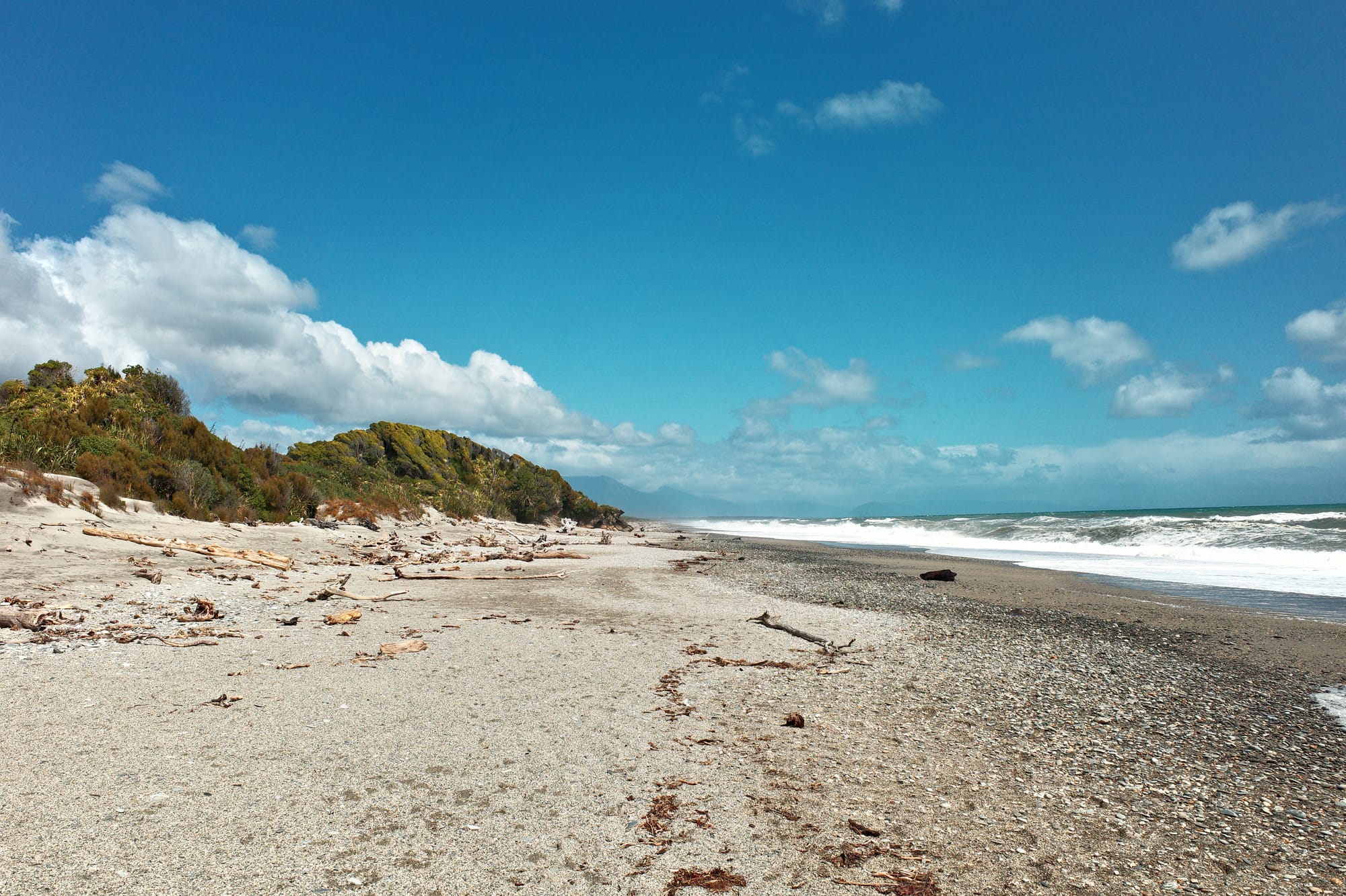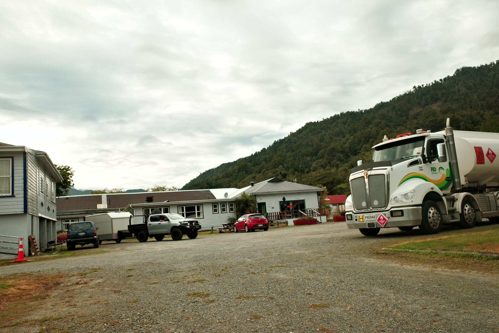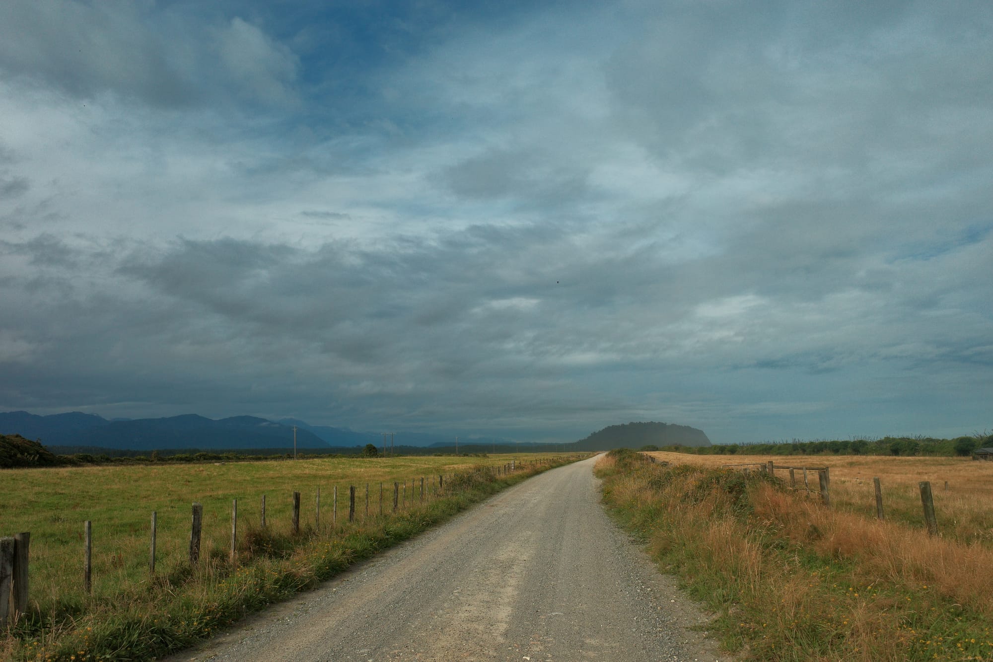 Na onze rustdag in Ross, was het tijd voor een paar stevige dagen snelweg. De eerste dag gaan we maar tot Hari Hari, met helaas nog wat pijn in mijn heup. Er zit nog een kleine tien kilometer gravel in de rit, maar verder rijden we tussen alle auto's, campers en logging trucks. Gelukkig is dit stuk van de snelweg nog niet zo druk.