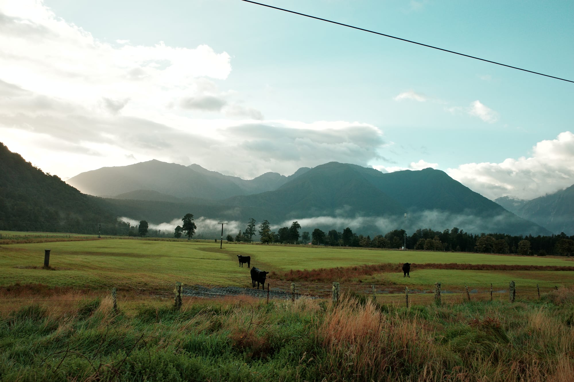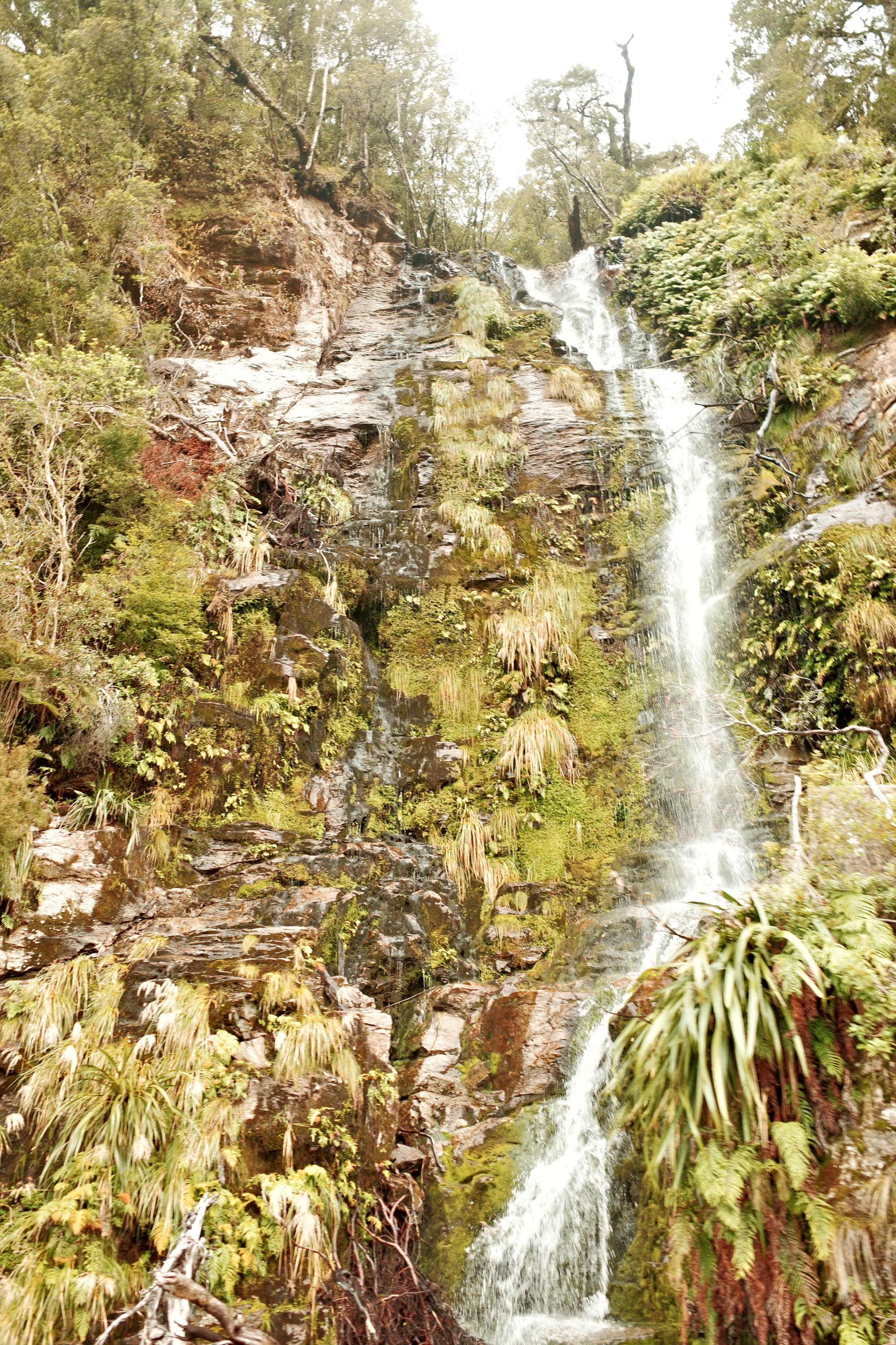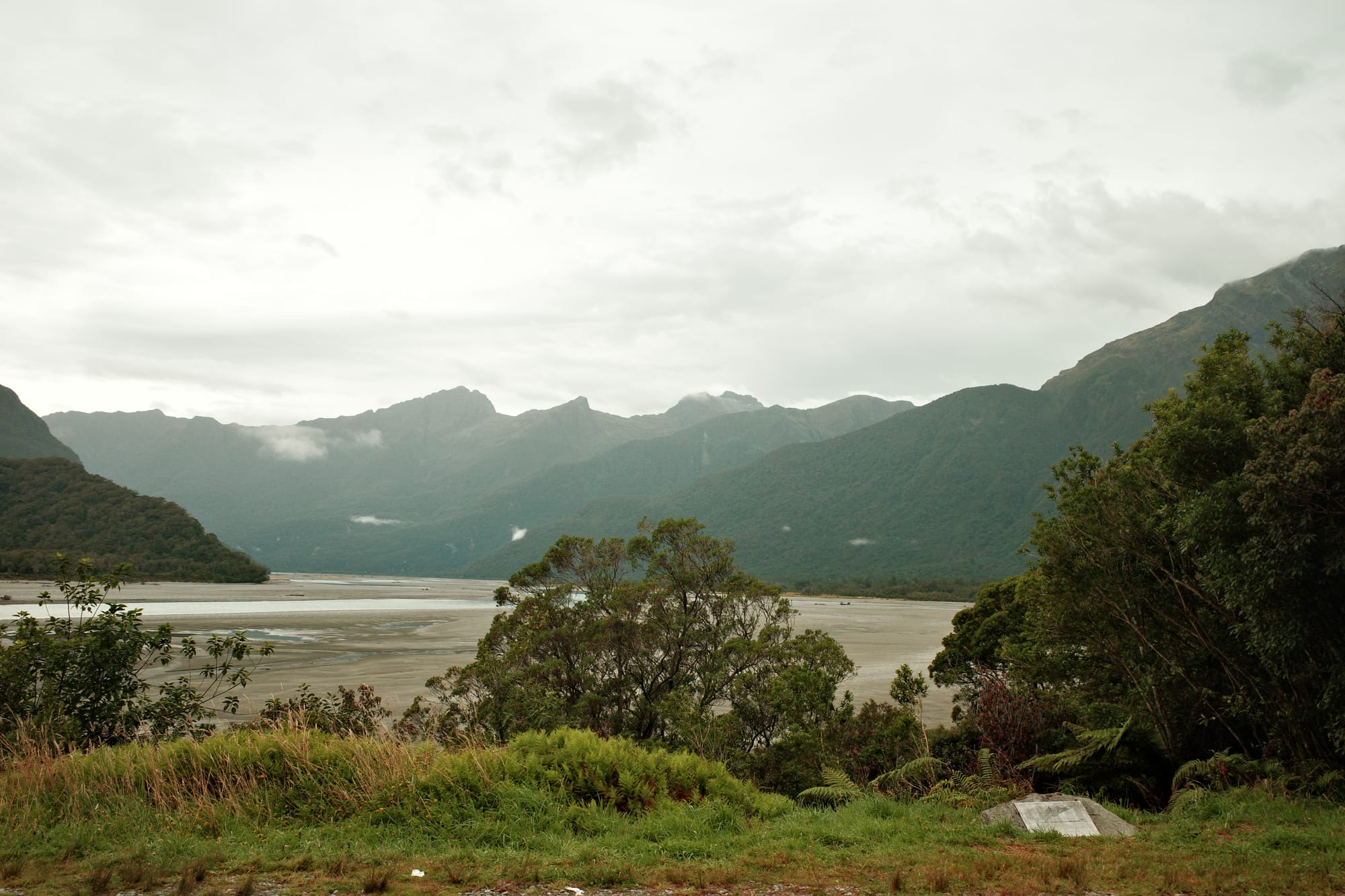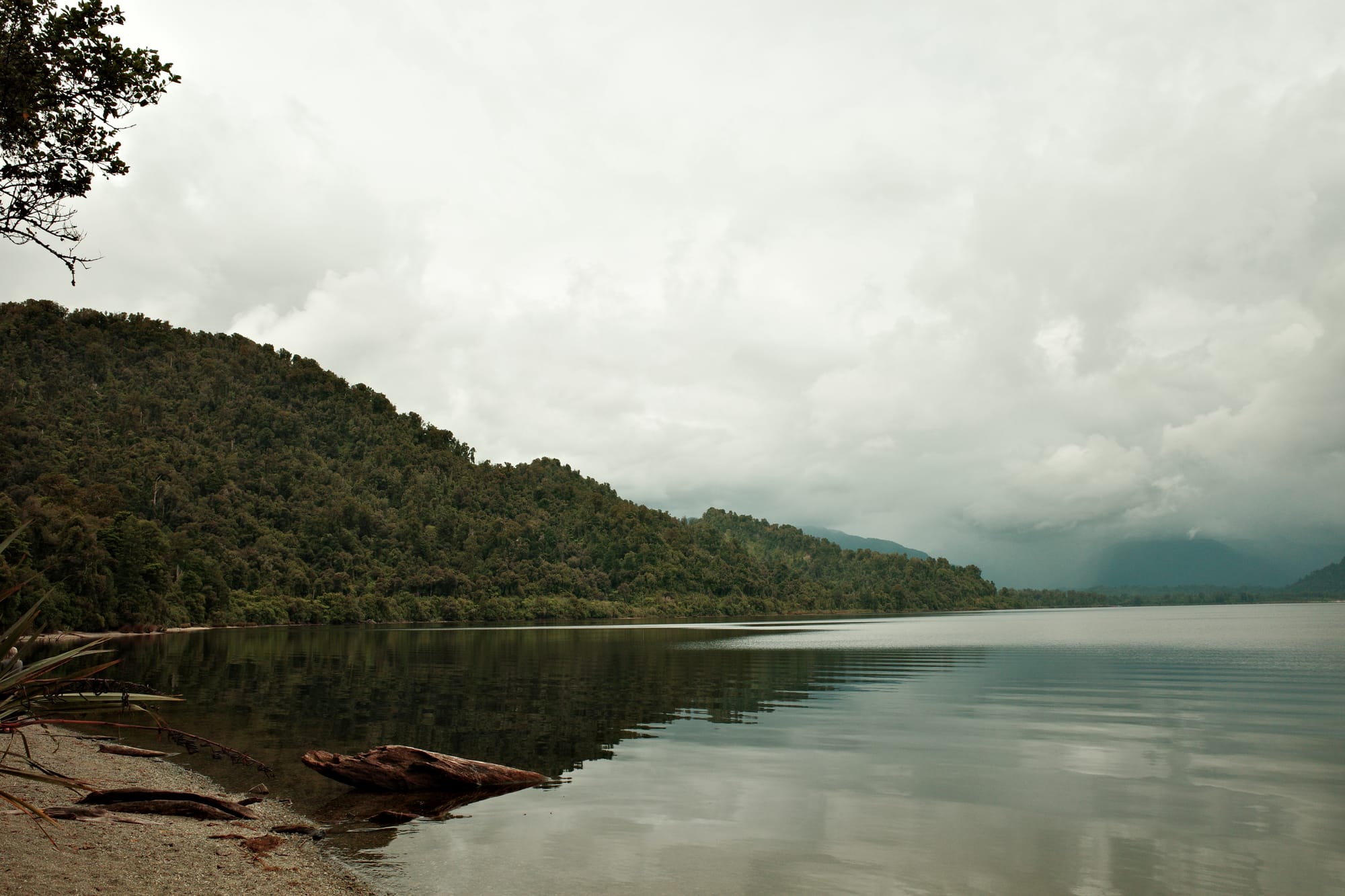 Het regent de hele nacht door, en 's ochtends pakken we onze tent in in de regen. De route tussen Frans Josef (waar een gletsjer is) en Fox Glacier (zoals de naam al zegt, ook een gletsjer) is druk. Het is een stroom aan campers, het is koud en het regent. We moeten drie stevige klimmetjes doen en we zijn koud en doorweekt tegen dat we Fox inrollen.
