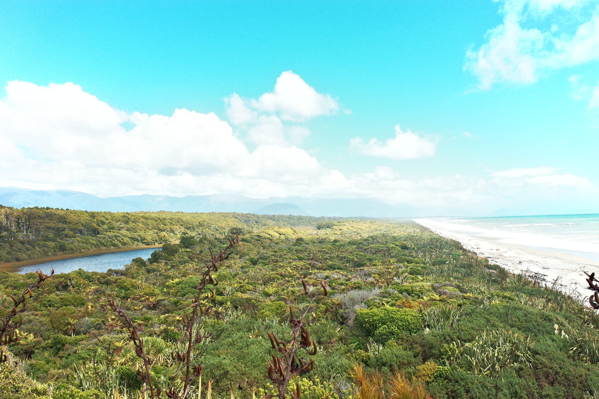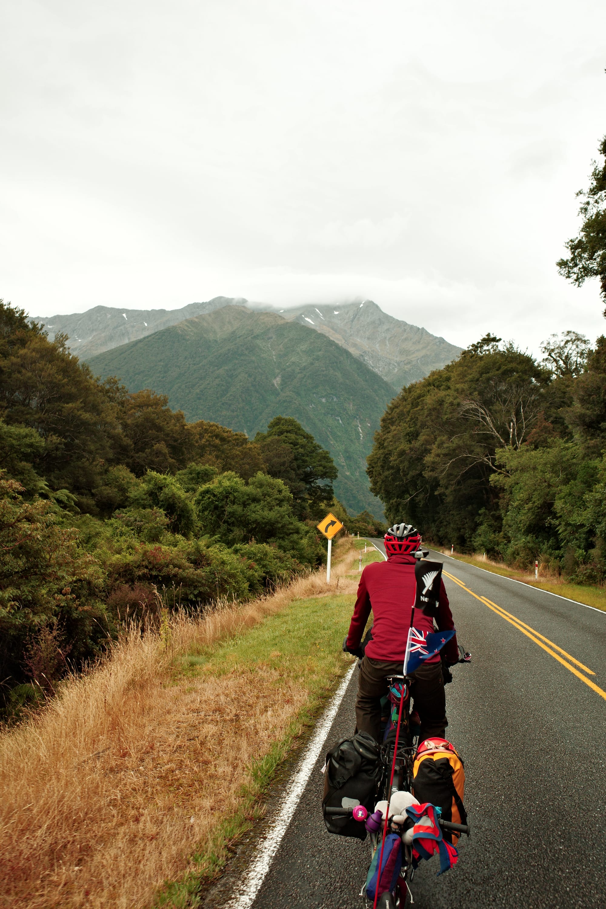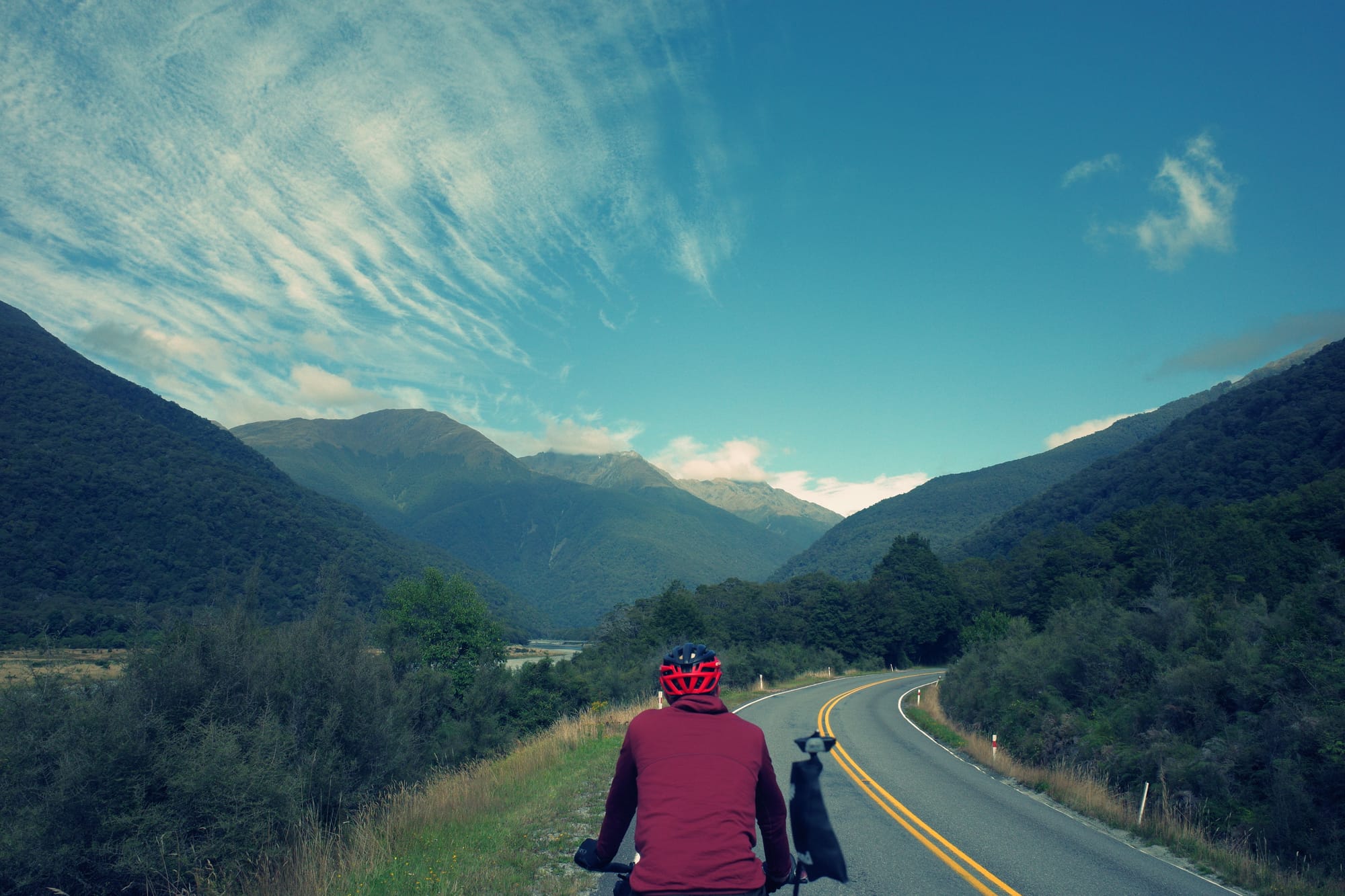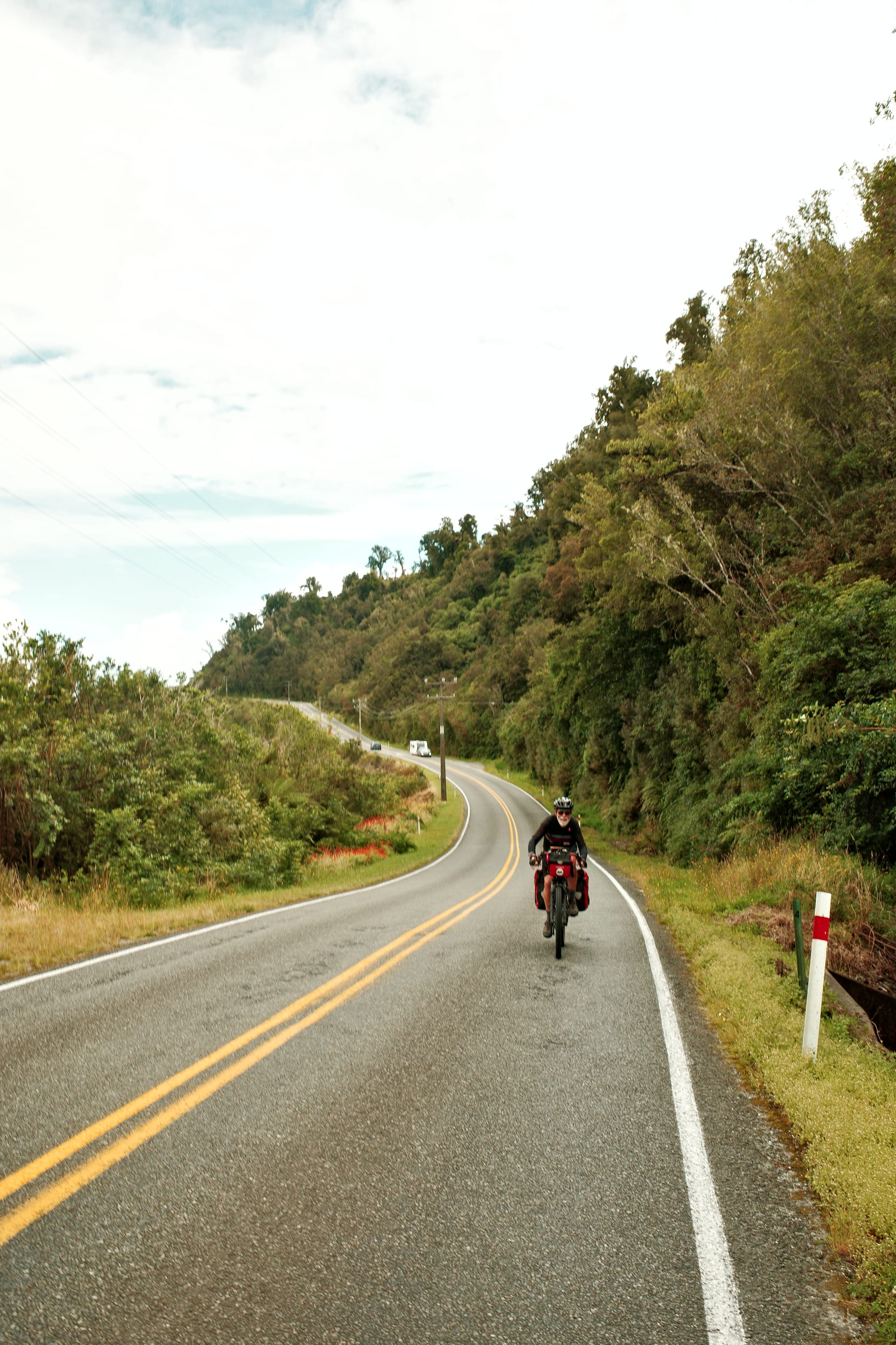 Na een onrustige nacht fietsen we verder over Highway 6 richting Frans Josef. We beklimmen Mount Hercules (klinkt erger dan het was).