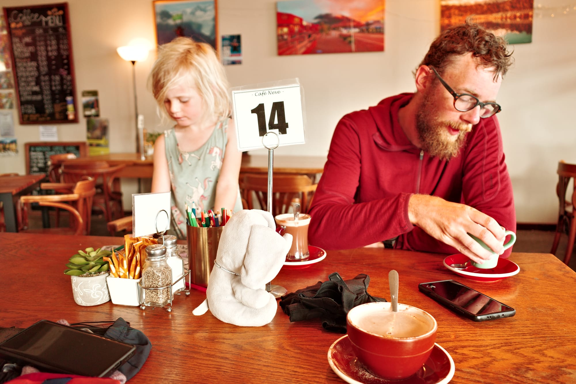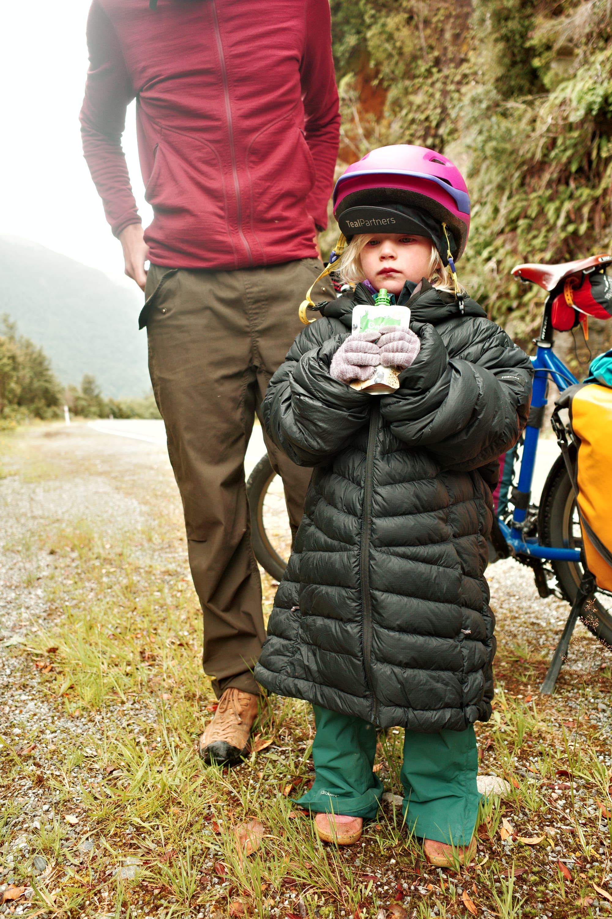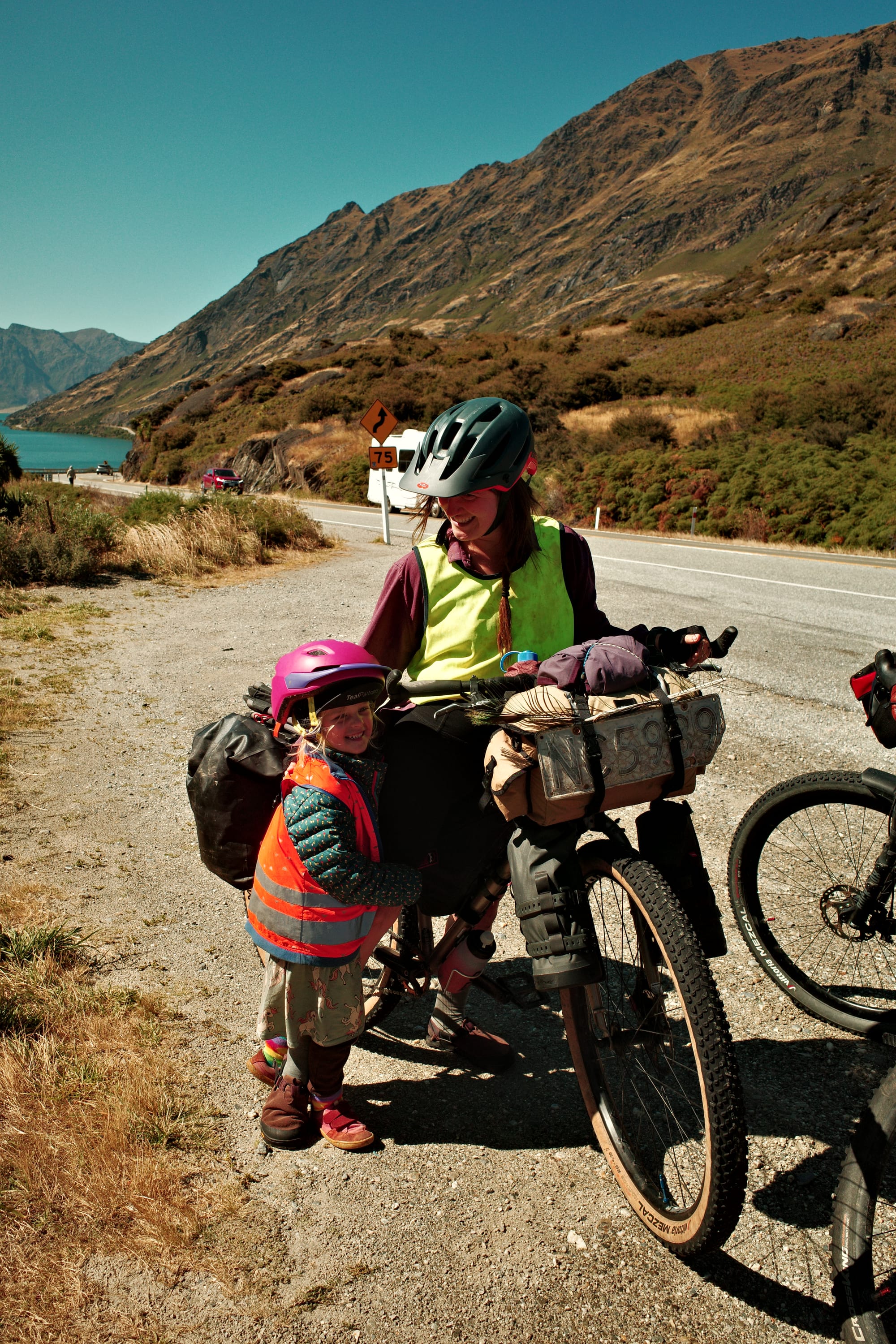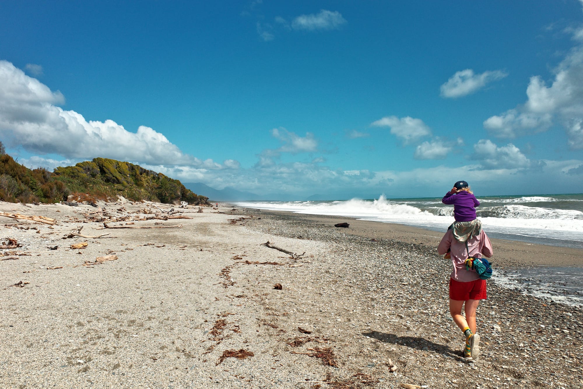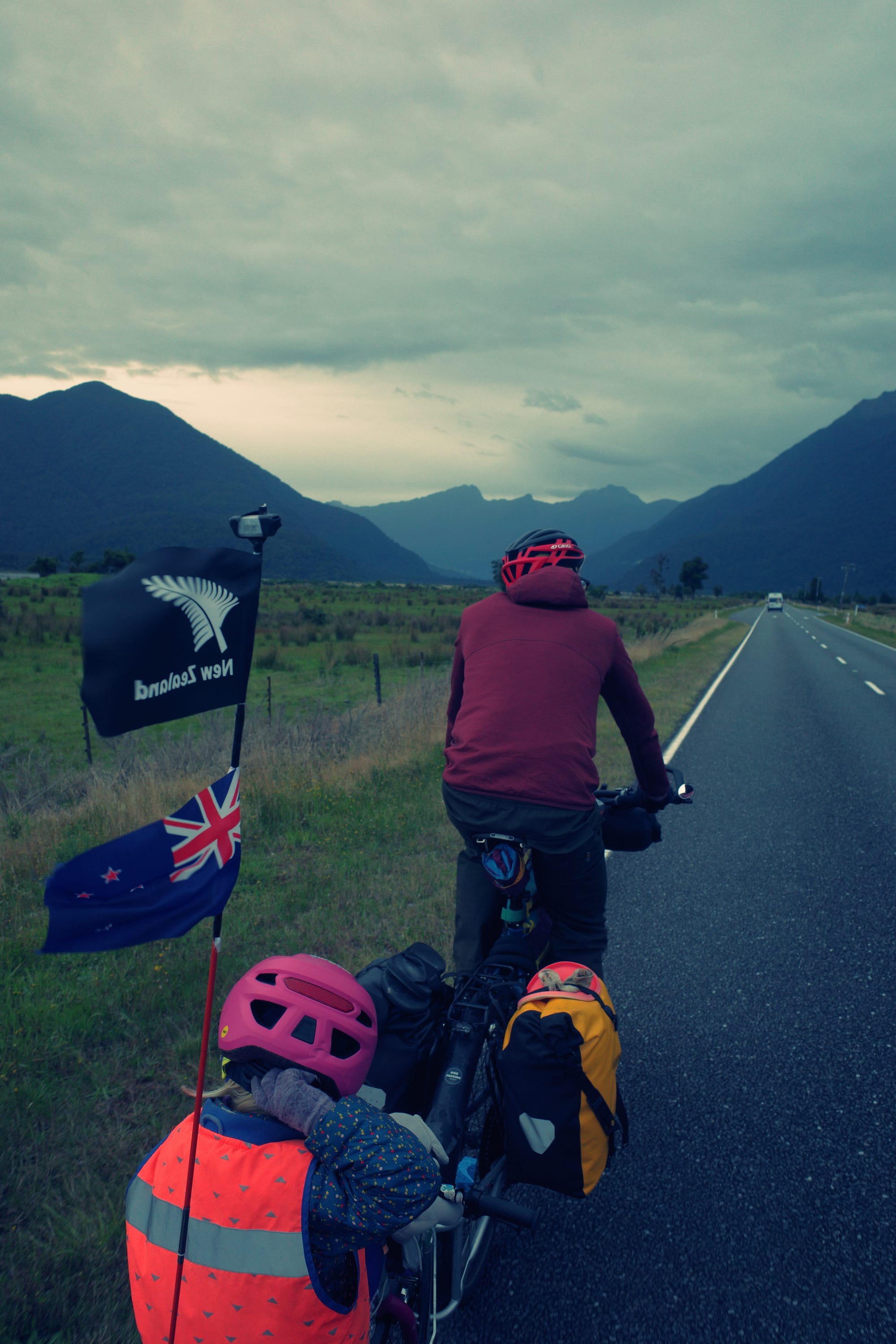 We zitten de hele namiddag in een café waar Mira een bak speelgoed heeft gevonden, en we kamperen op een vervallen plekje. We komen ook Steven tegen, een opa van 69 die in zijn eentje ook door Nieuw Zeeland fietst. Een man vol verhalen!