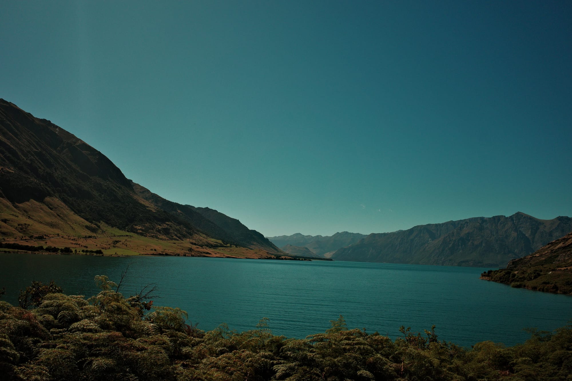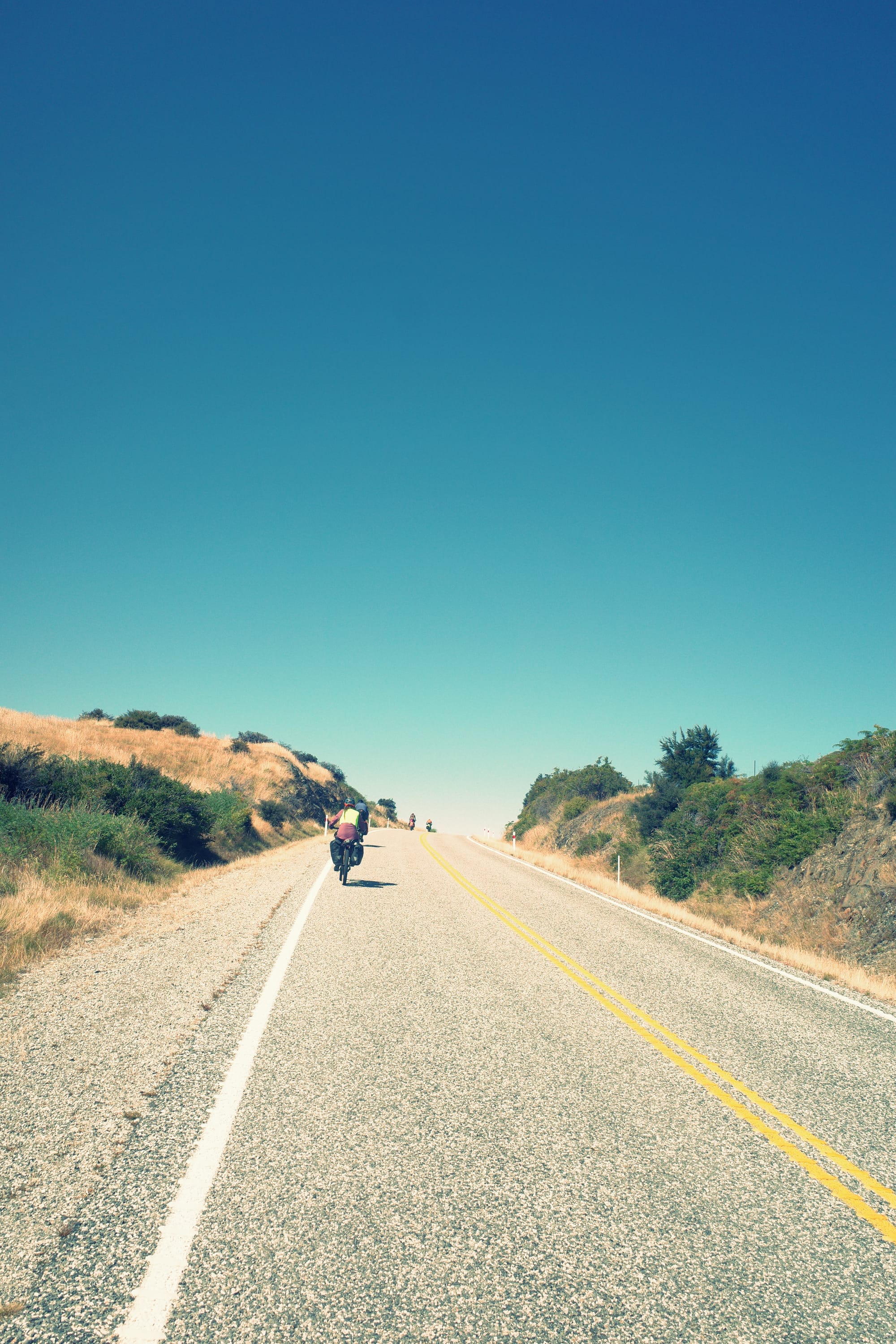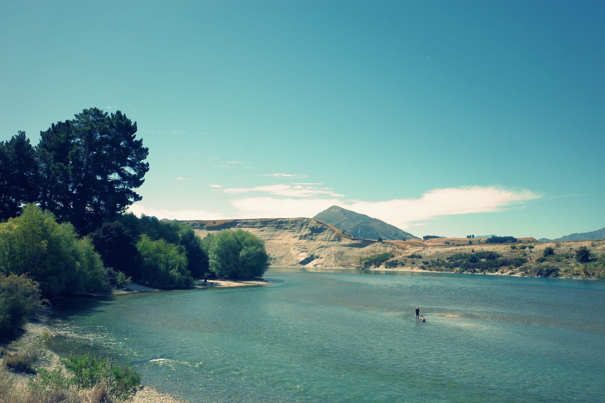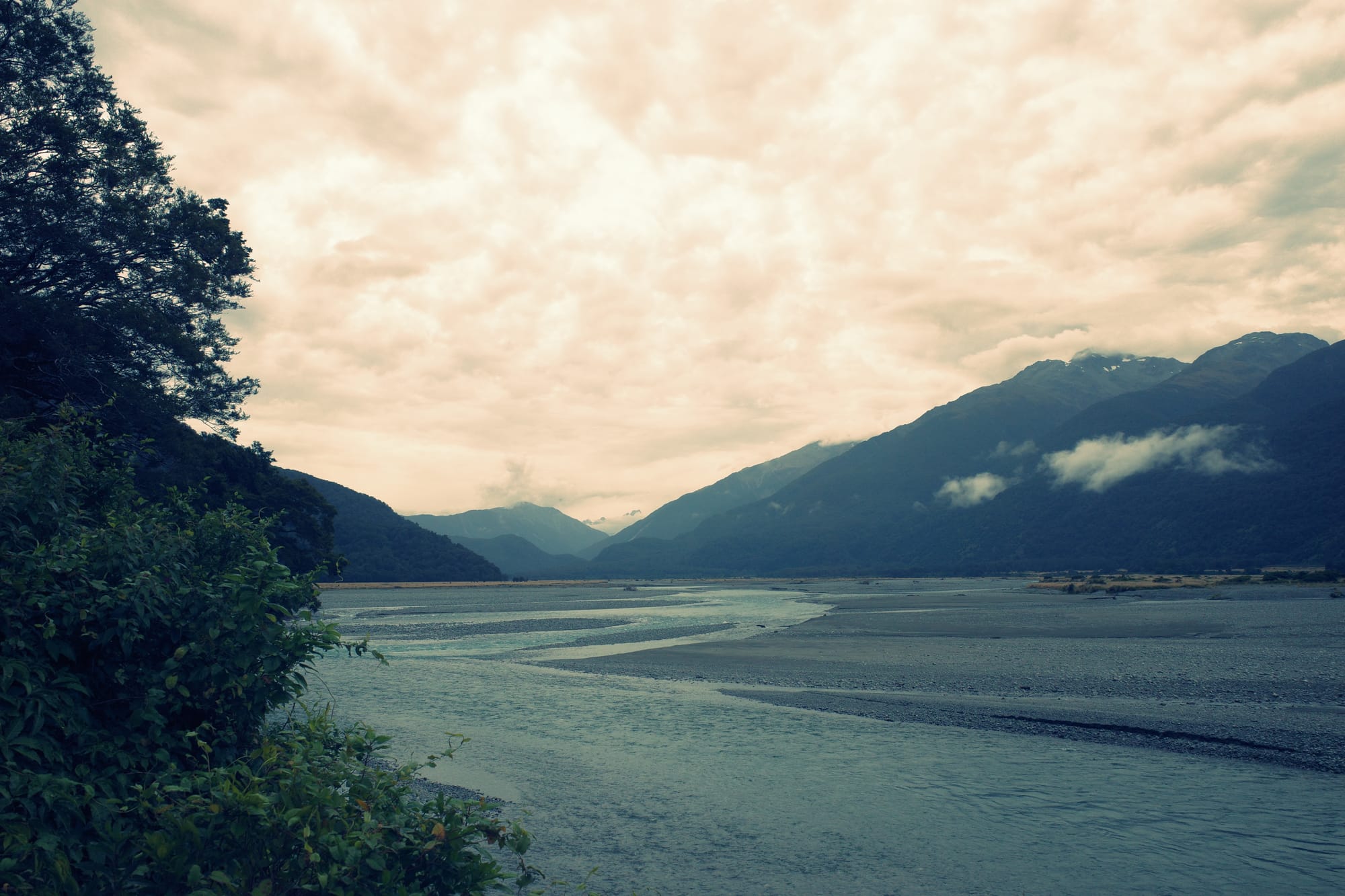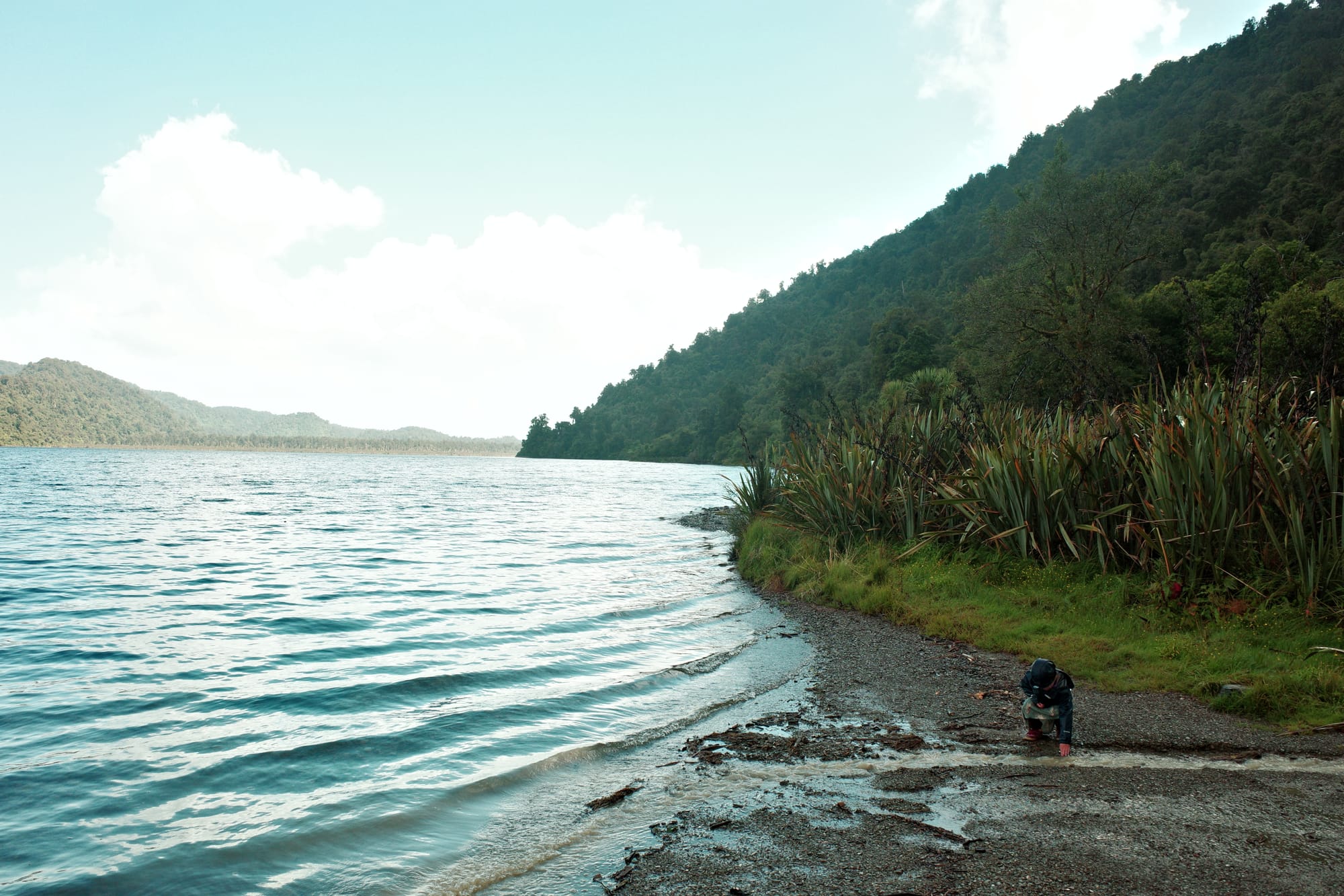 De omgeving wordt langzaam ruiger en de toppen hoger. Helaas hebben we ook een gigantische aanvaring met een klootzak op de weg die ons van de weg wil hebben (Kiwi's herhalen een quote uit de LOTR het meest: GET OF THE ROAD!). Nadat hij ons vrij letterlijk bijna aanrijdt, wij hem compleet de huid volschelden (sorry mam en pap, jullie hebben me beter opgevoed) en we daarna een kwartier moeten bekomen van de adrenaline, fietsen we met een klein hartje verder. De bochten worden smaller, het zicht slechter en het verkeer drukker...