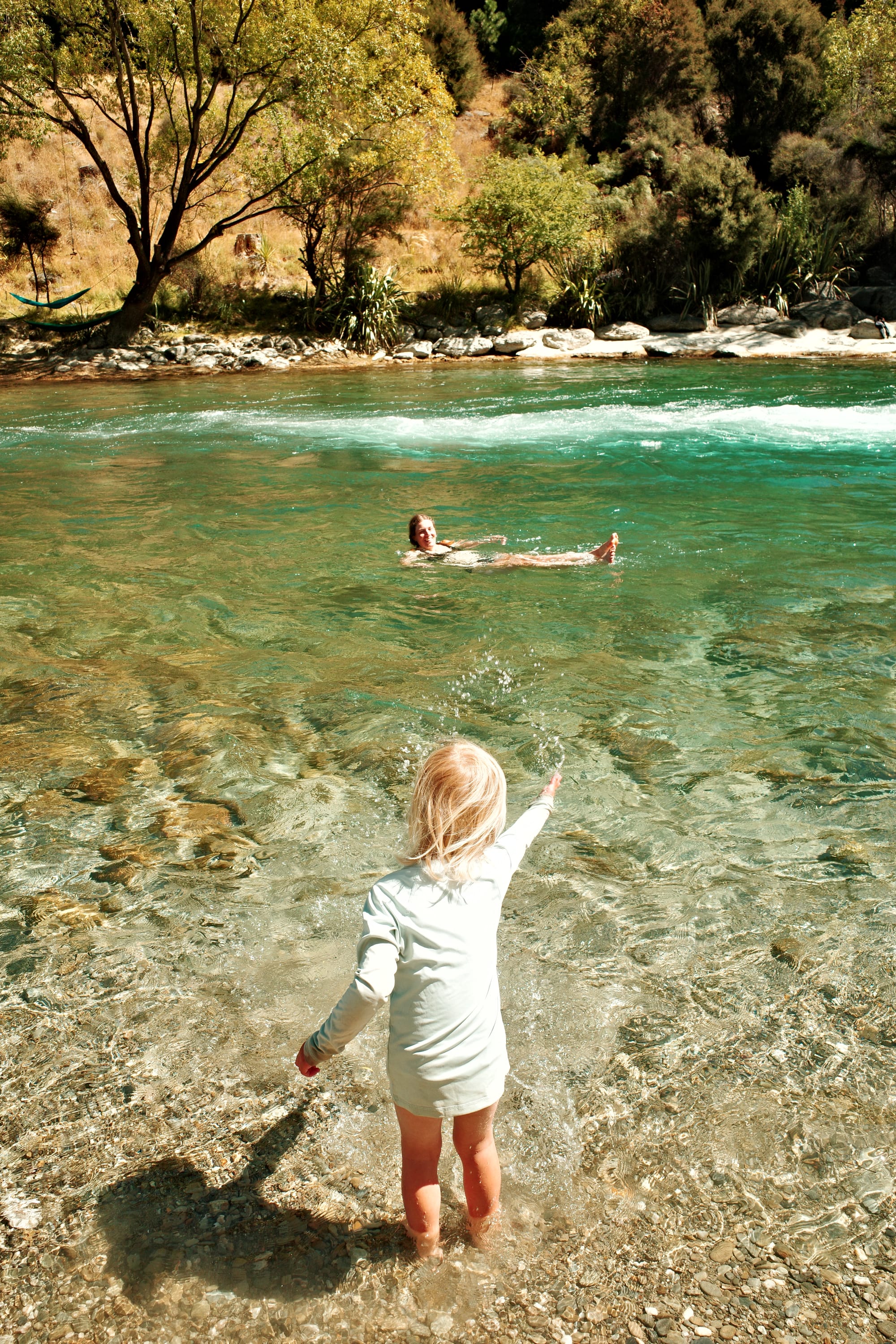 We stoppen ook voor een duik in de ijskoude rivier