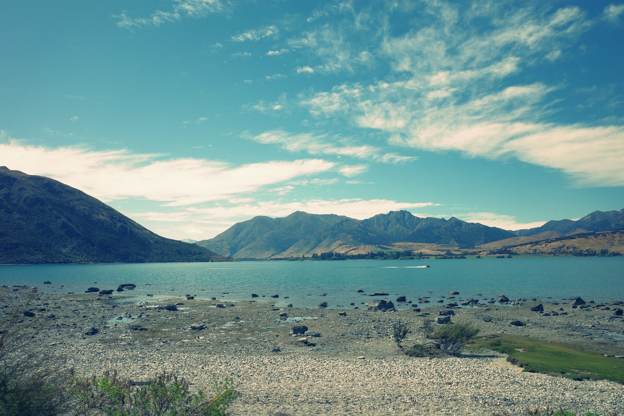 Het landschap is prachtig, het pad is hobbelig maar mooi, en ons einddoel van deze week doorknallen komt in zicht: Wānaka.