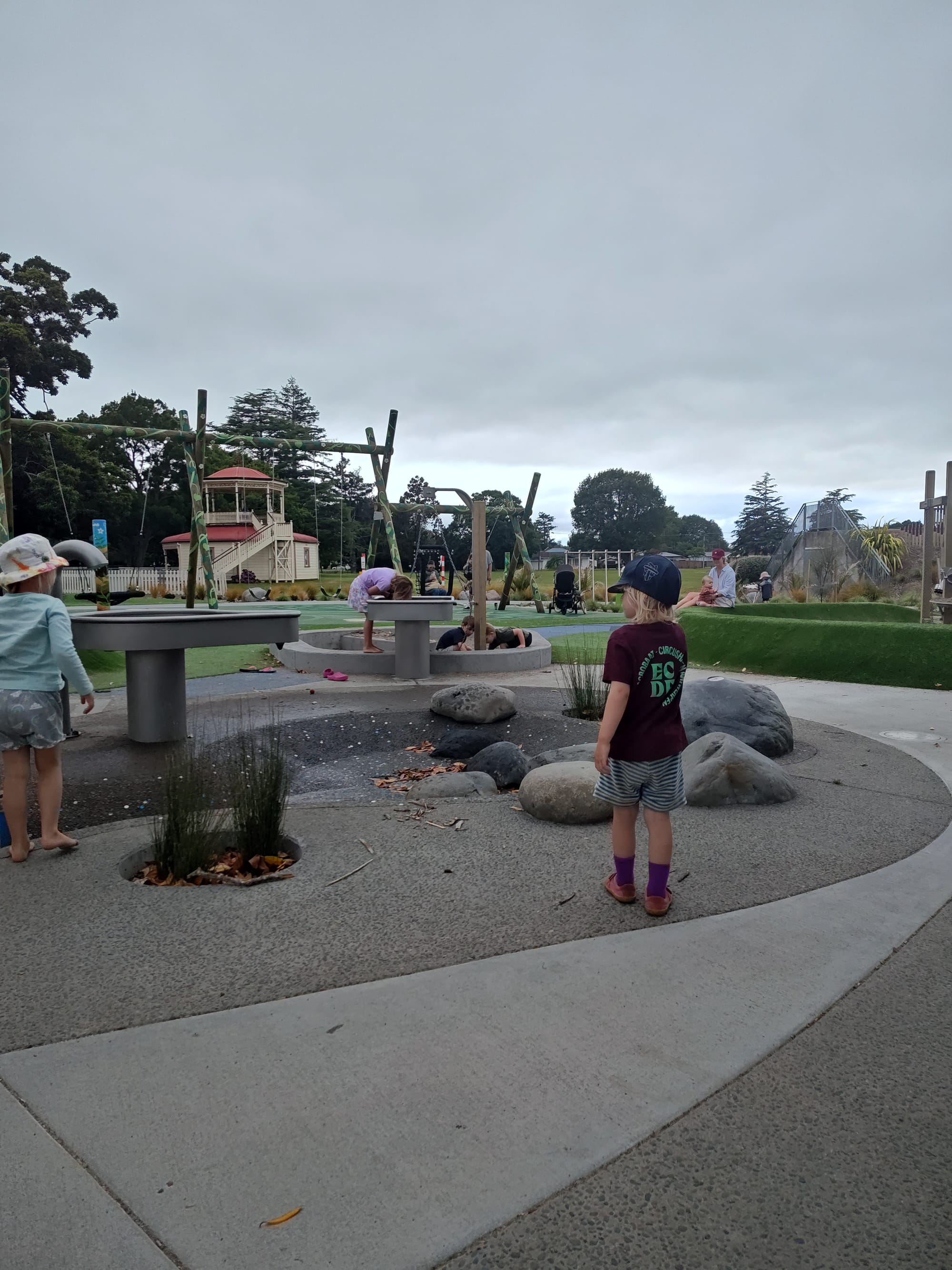 De volgende ochtend werden we nog vroeger wakker gemaakt, 5u30 dit keer... Senne z'n matje was nog steeds lek, dus die nam de bus naar Hamilton om een nieuwe te kopen. Mira en ik bleven in de speeltuin wachten en spelen.