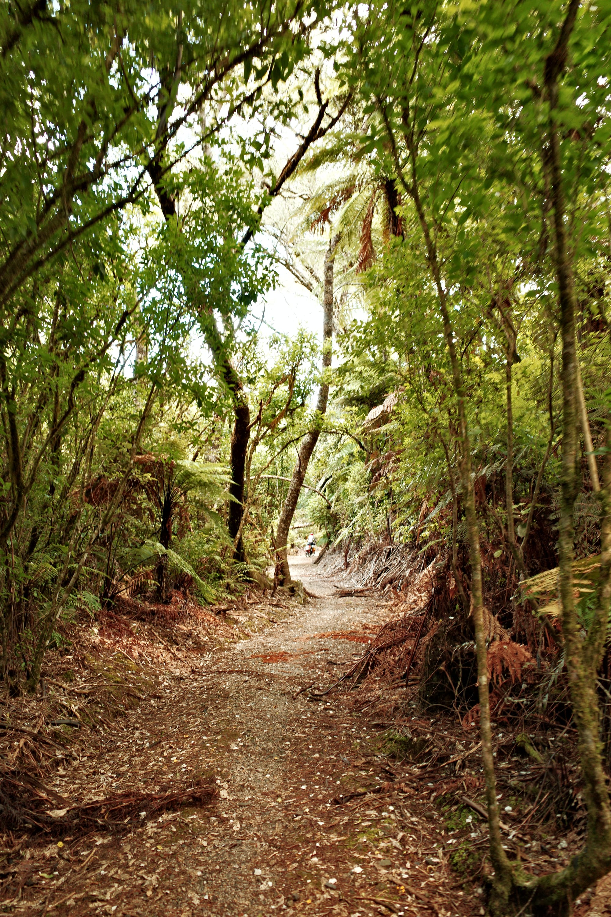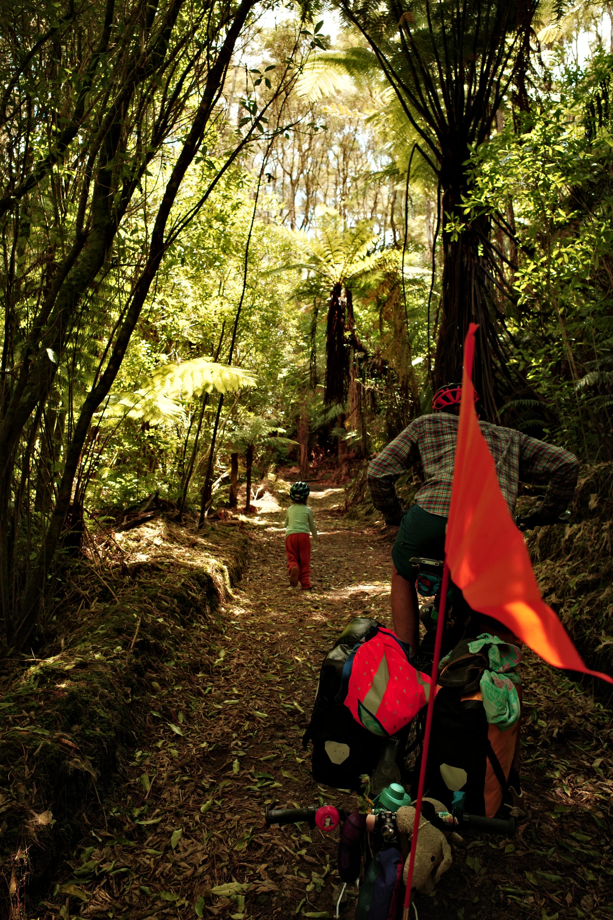 Ondanks een echt bed, een slechte nacht gehad, Mira had nachtmerries en sliep heel onrustig. Toch vroeg vertrokken, want we hadden weer een stevige dag voor de boeg. We deden een stuk van de Waikato River Trail. De eerste 20 kilometer waren stevig maar doenbaar. Senne en Mira zwommen even in de rivier en toen begonnen we aan het volgende stuk.