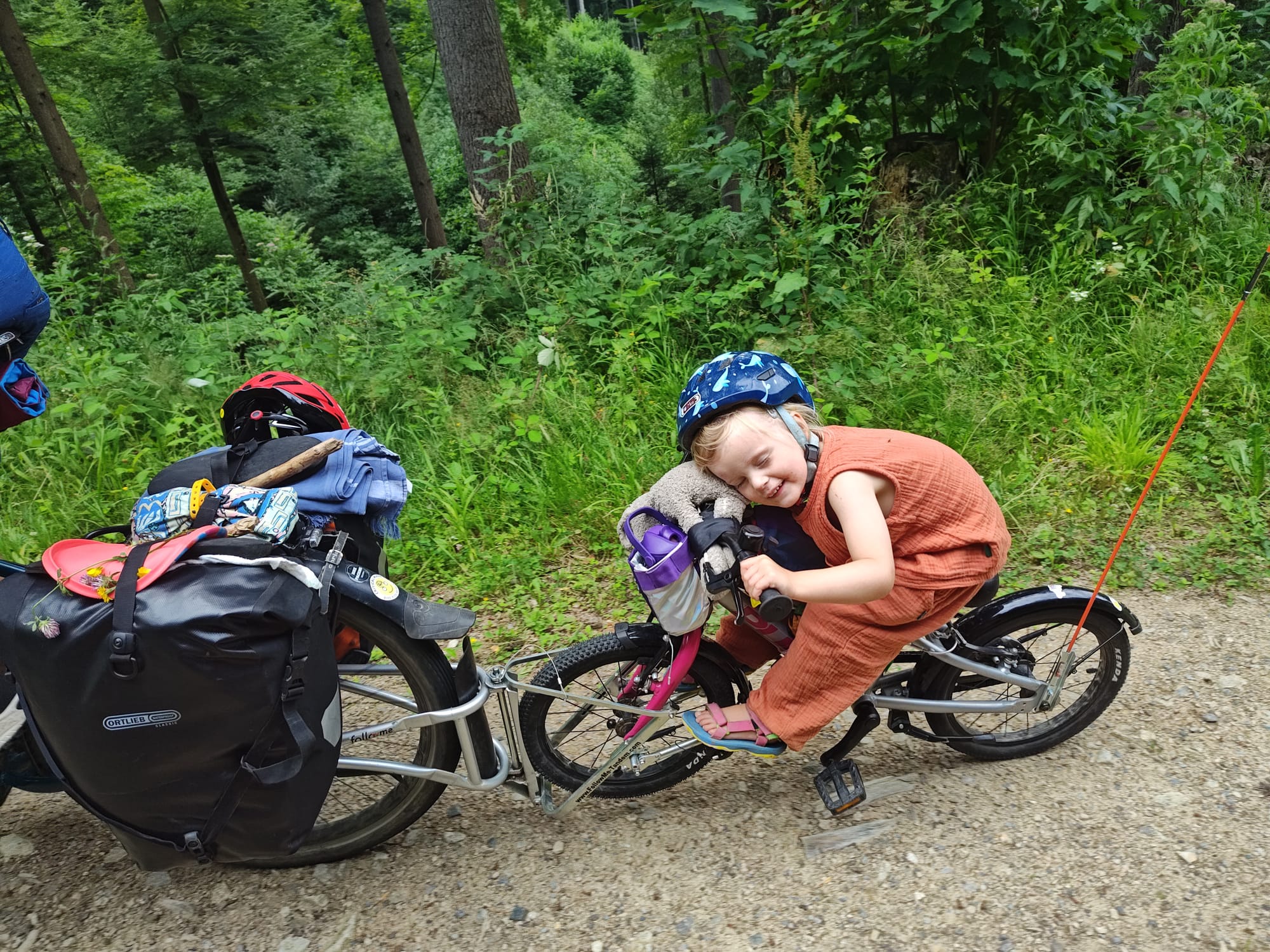 De rest van de dag is mooi maar ook heel pittig. Sommige paden zijn te stijl om te fietsen, dus moeten we af en toe afstappen en onze zwaar beladen fietsen duwen.