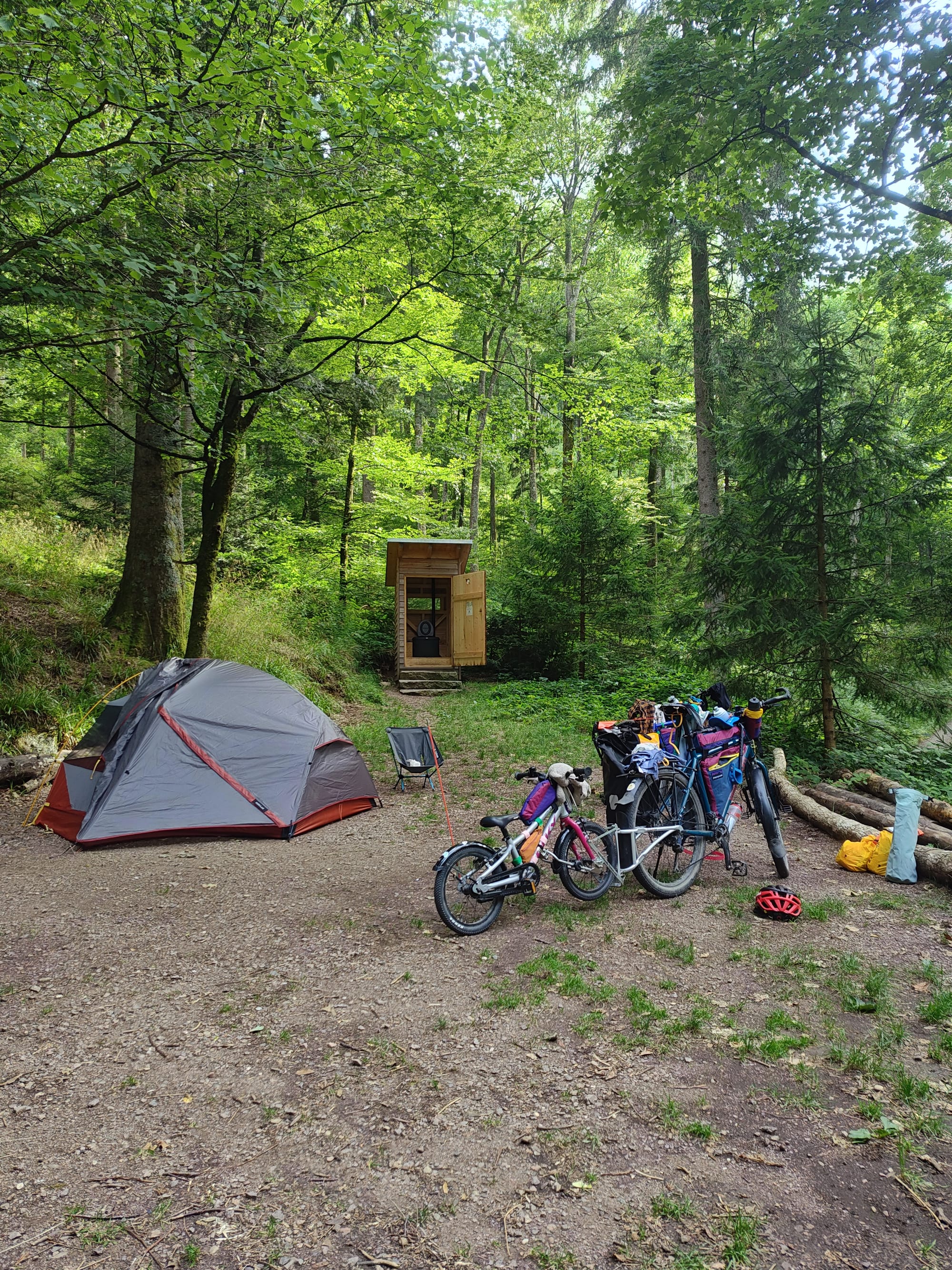 We krijgen als beloning wel de mooiste uitzichten en hebben een prachtig slaapplekje midden in het bos!