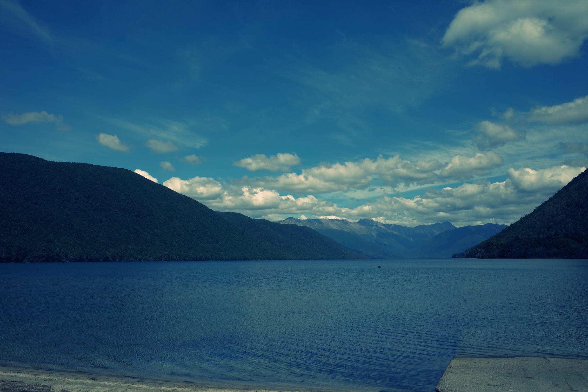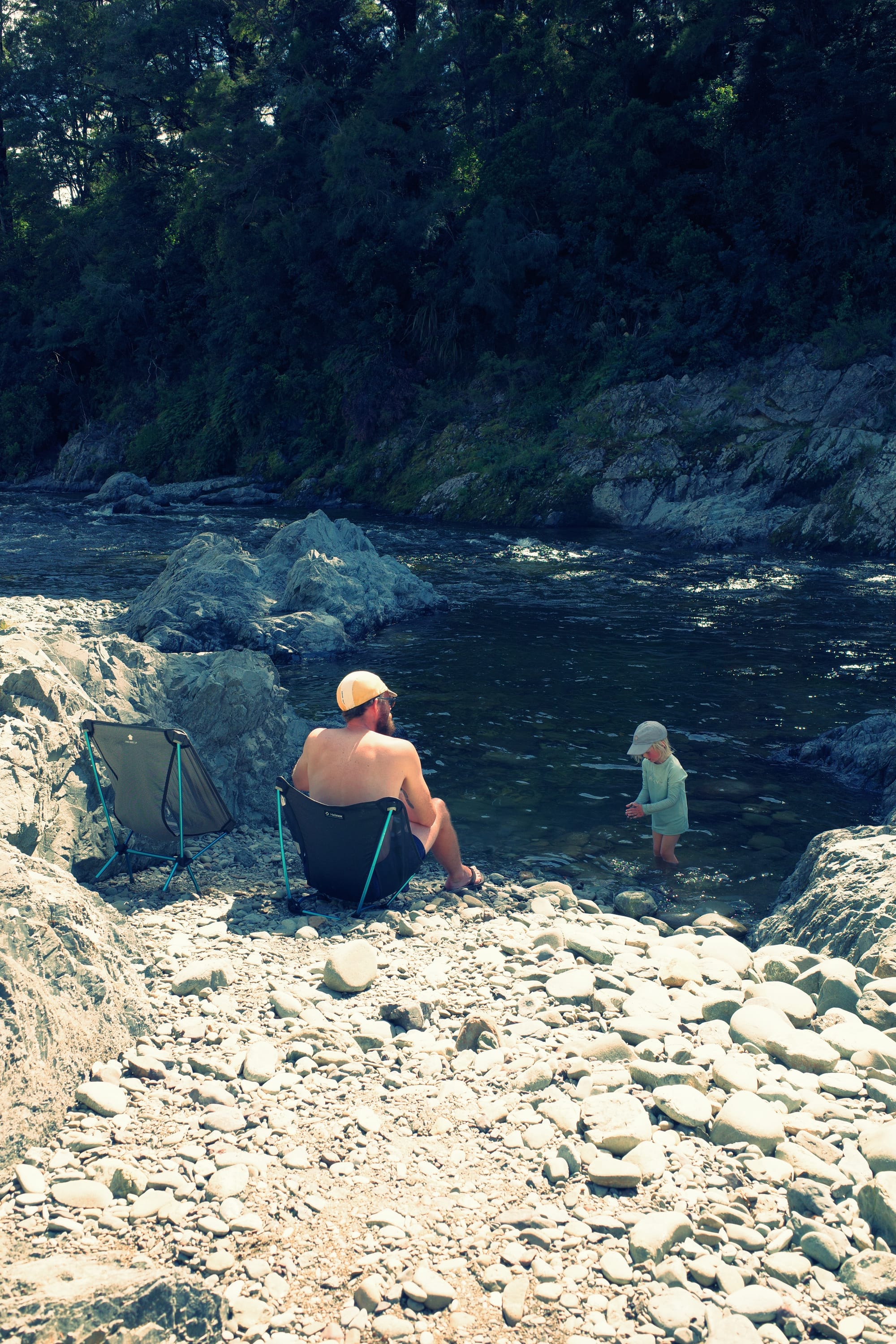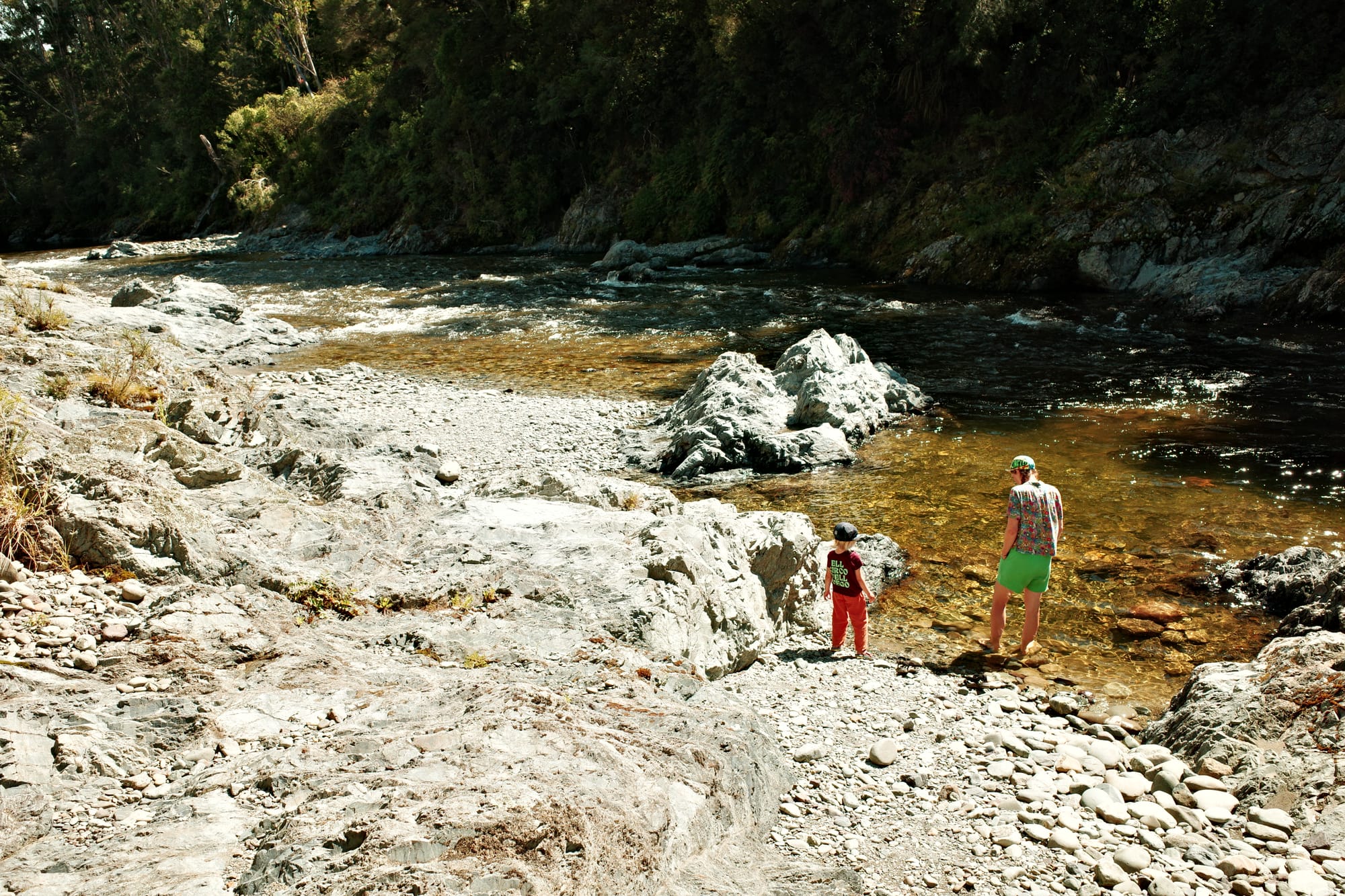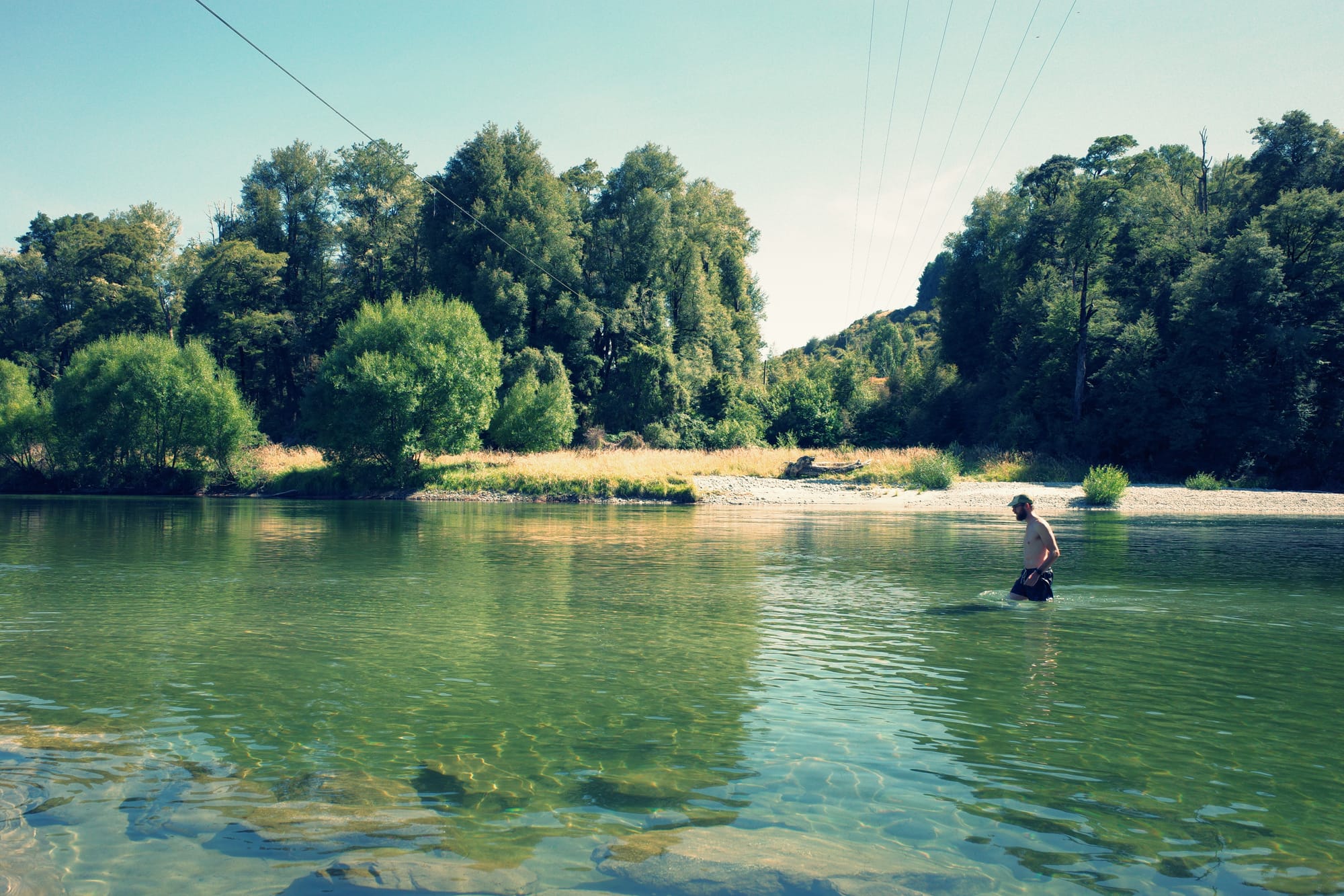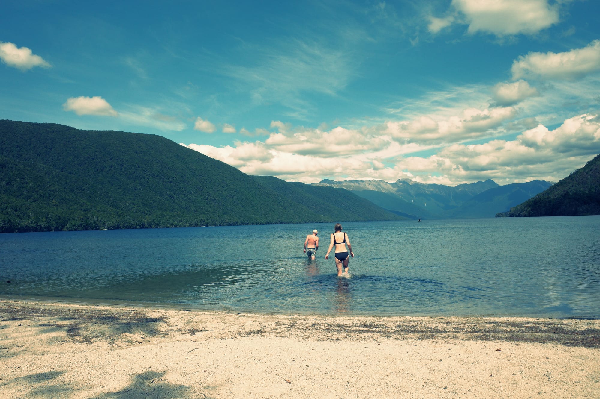 We reden door stroompjes, hadden eindelijk uitzicht op hogere bergen en zwommen in Lake Rotoroa. Bij Rotoroa stikte het dus wel van de sandflies, dat was dus snel het water in en razendsnel weer weg.