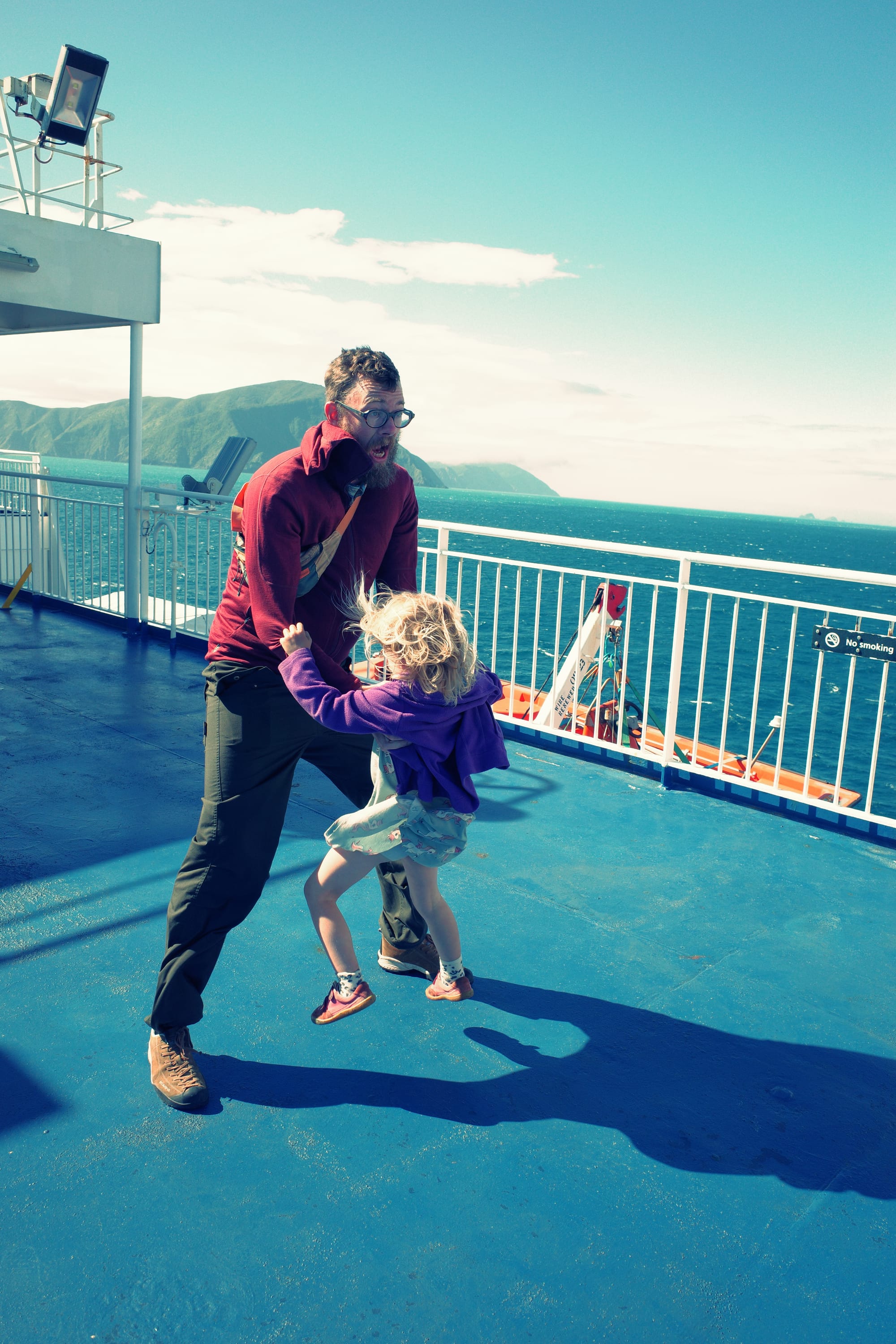 Na een broodje aan de speeltuin stapten we op de fiets naar de Interislander. We mochten als fietsers als eerste aan boord (en aan het eind ook weer van boord), dus we hoefden niet lang aan te schuiven.