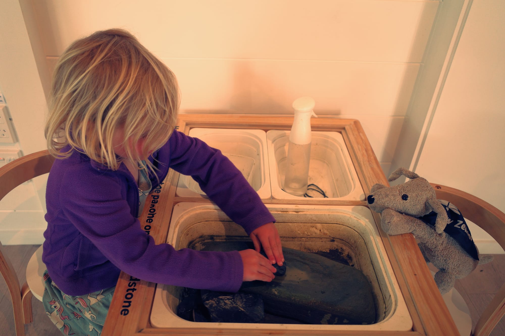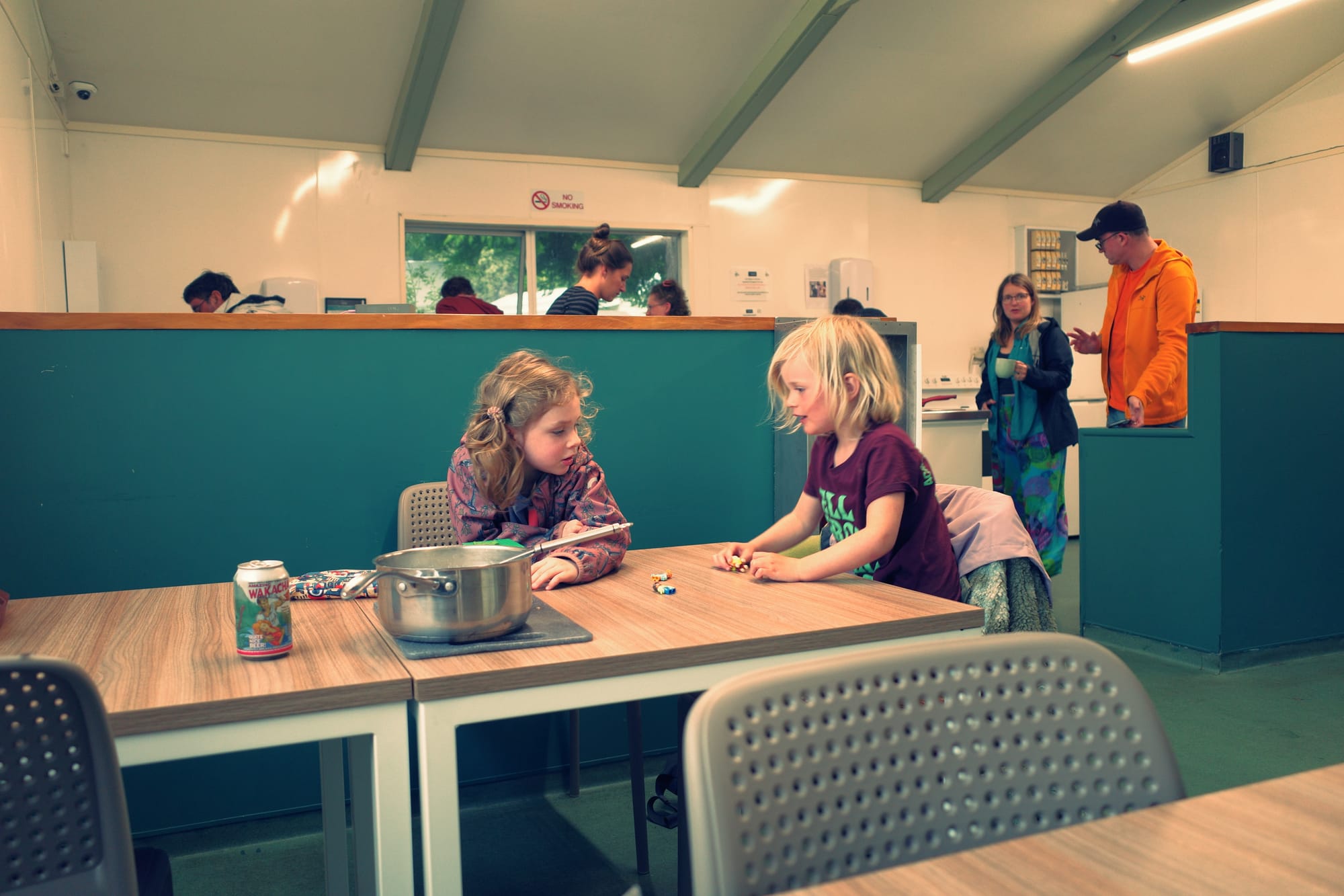 Gelukkig konden we opwarmen in de gemeenschappelijke keuken (de meeste campings hier hebben dat, heel fijn!) en Mira speelde zowaar nog eens met een ander kindje.