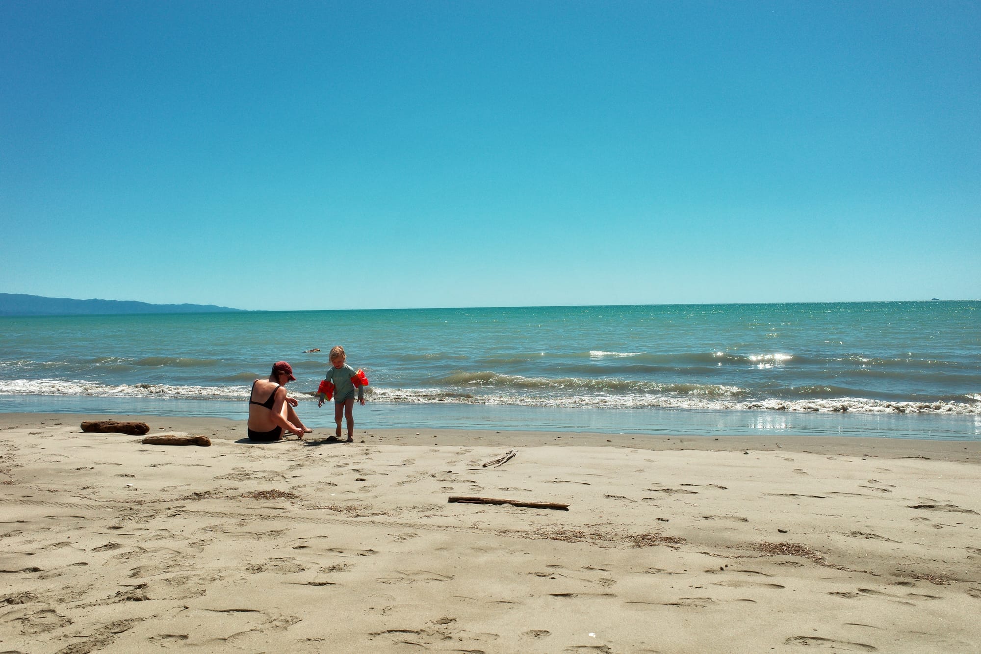 Wat volgt is een rustige en korte fietsdag, want we komen een prachtig strand tegen waar we lang blijven hangen. We nemen daarna een klein overzetje, eten een ijsje en drinken wat in Māpau.